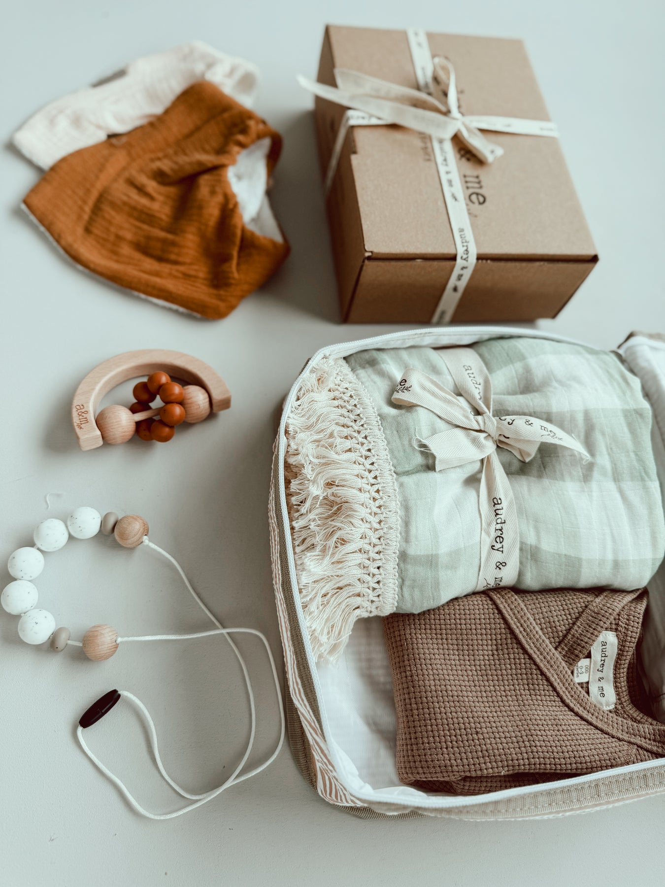 Audrey and Me baby gift boxes are the perfect gift bundle for every new and expectant mother. All of our favourite products, both practical and stylish, packaged beautifully together with a personalised note.