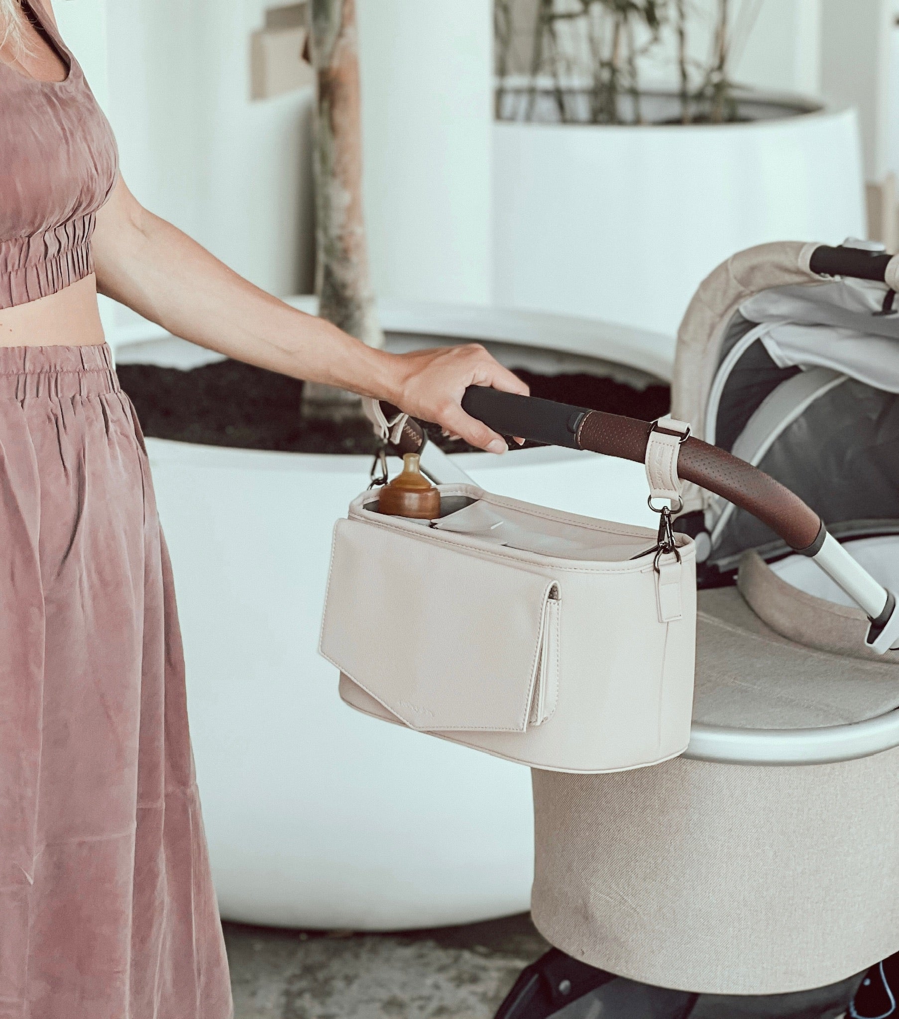 The perfect pram organiser for every mum - room for all your essentials AND your to-go coffee!